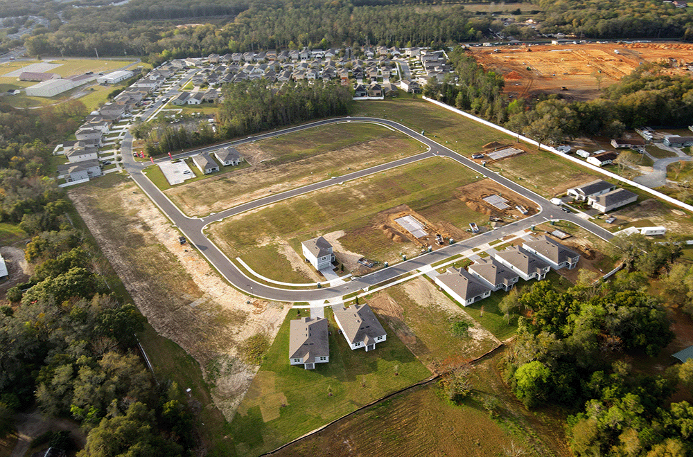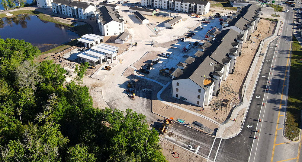 Site improvements are paused at the Falcon Trace II multi-family residential project as crews continue to work on the 16 residential buildings at this 30-acre development in Kissimmee, Fla.