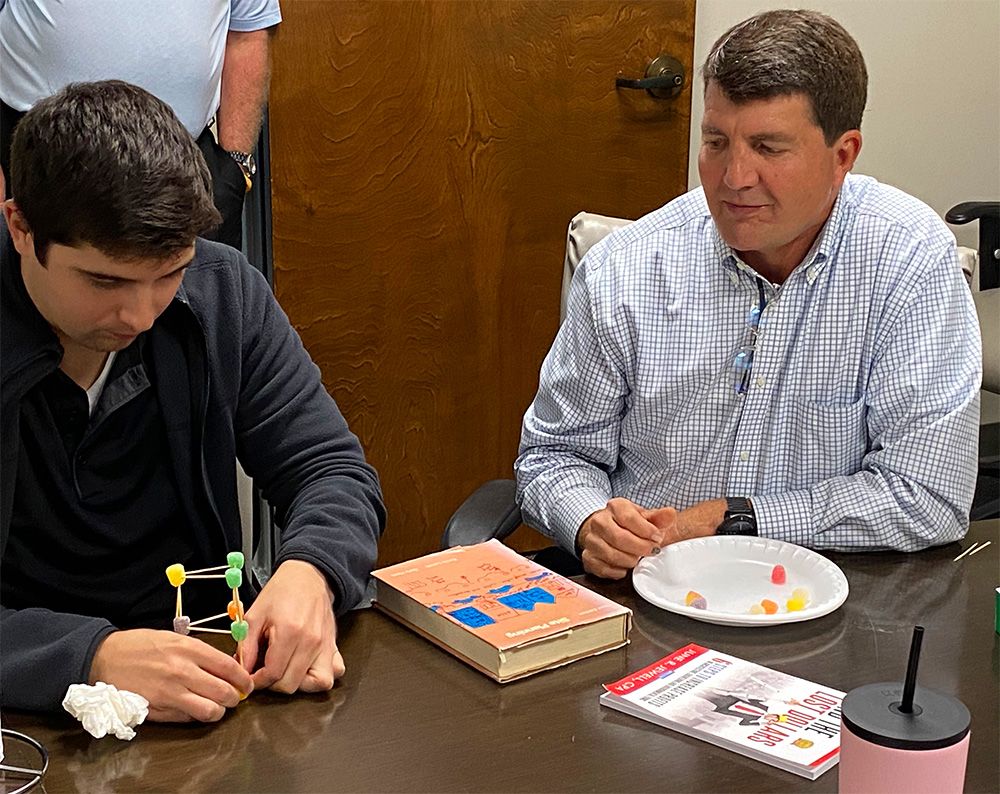 As a company that provides engineering solutions, it is only fitting that KPM Franklin celebrated National Science, Technology, Engineering and Math Day by hosting a STEM-related activity for employees. Our Orlando office participated in a gumdrop structural engineering challenge that encouraged tinkering, experimenting, researching, logic and collaboration. Our engineers and planners split into four teams and were tasked with using ten gumdrops and twenty toothpicks to build a structure that could hold the weight of a hardback textbook. Alex Goetz and Hunter Nimmo built the winning structure. The enthusiasm and creativity of our colleagues was impressive. The fact that they worked together and bounced ideas off one another to build these structures illustrates the importance of STEM education. Congratulations Alex, Hunter and the rest of our Orlando staff.