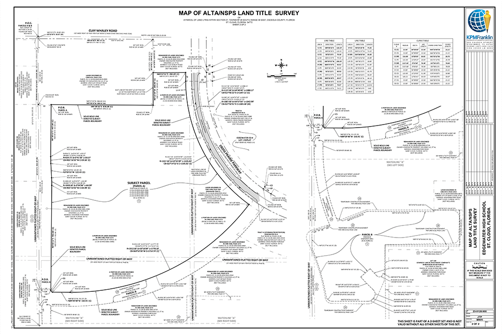 KPM Franklin was contracted by The School District of Osceola County to provide an ALTA/NSPS land title survey for the Edgewater West future high school site on 50.1 acres in St. Cloud, Florida.