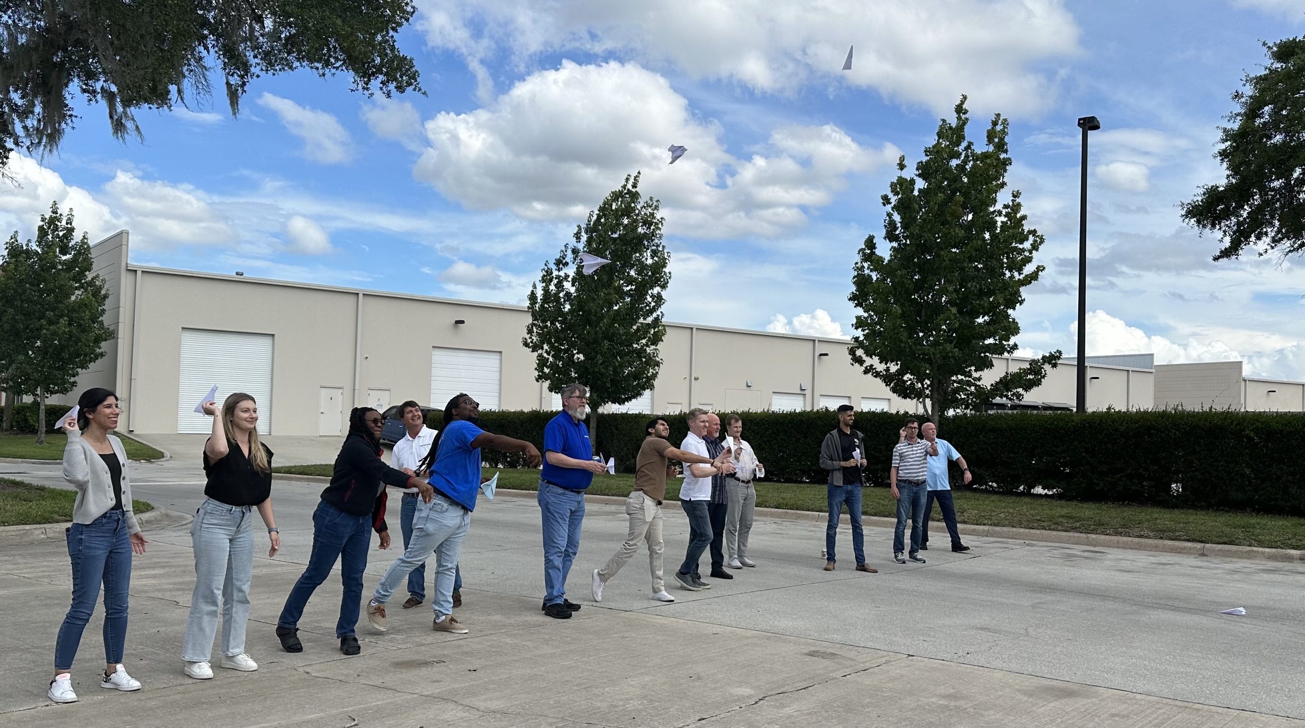 Our Orlando office celebrated National Paper Airplane Day 2023 with its second annual paper airplane competition. Our engineers and planners had the opportunity to showcase their aircraft design and paper folding skills. Alex Goetz, P.E., was crowned our 2023 paper airplane champion with the longest flight.