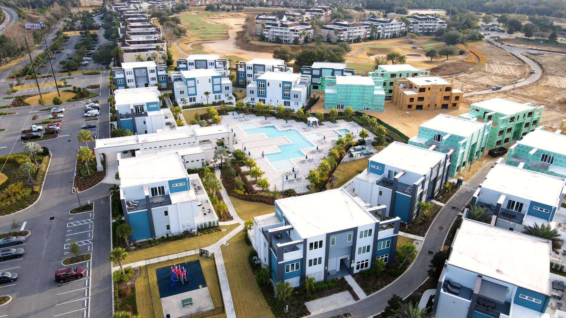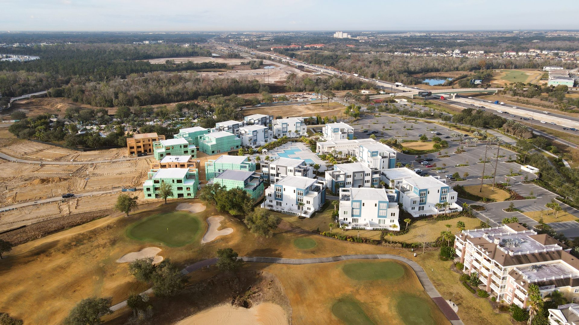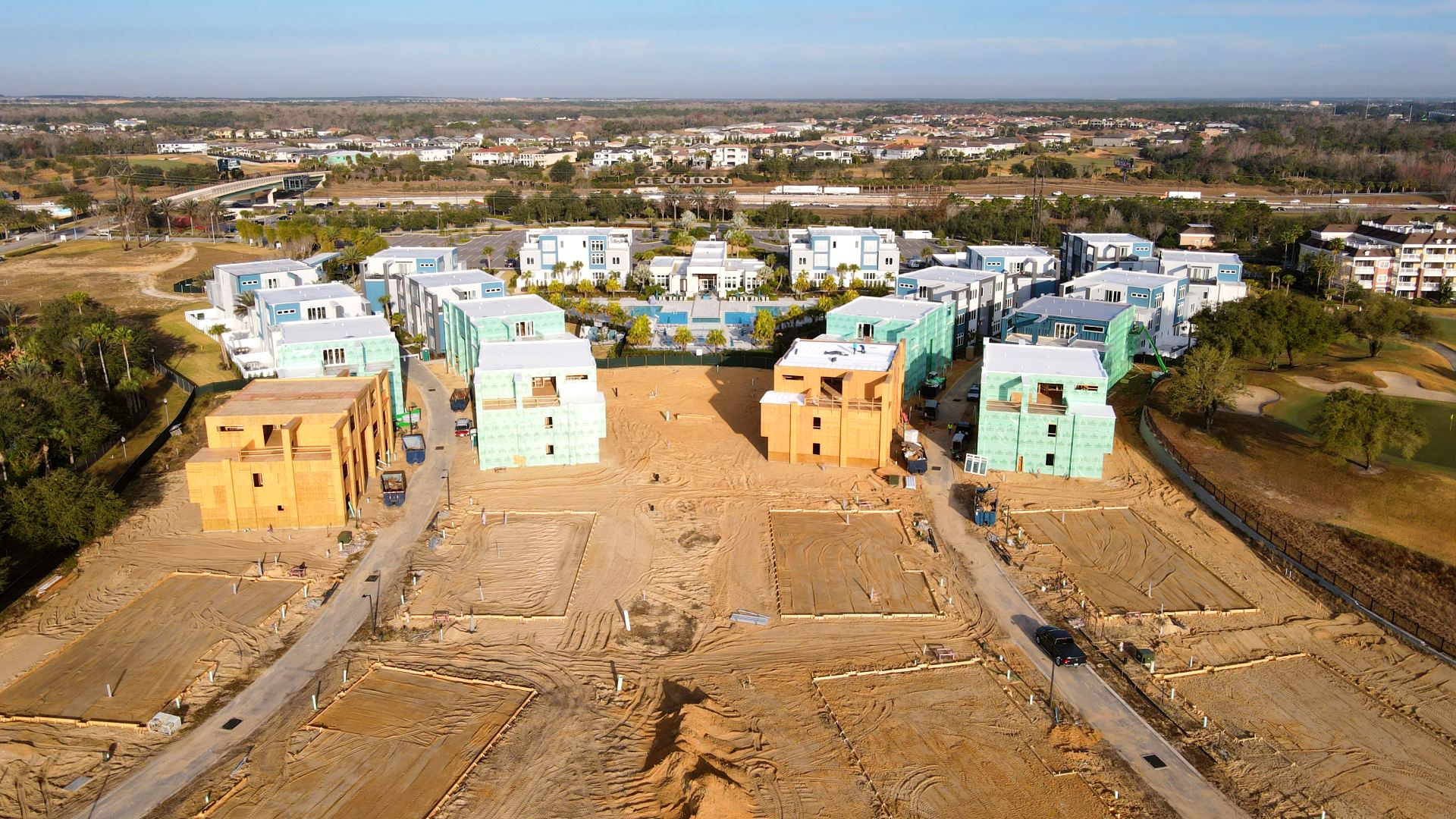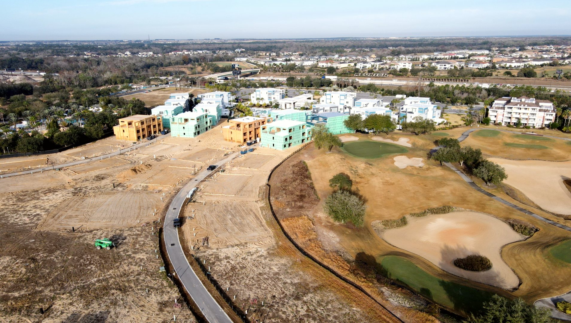KPM Franklin has been contracted by Encore Resort Homes to provide land surveying services for the 46-acre Spectrum Resort Orlando condominium development at Reunion Resort in Osceola County. The first phase of the project on 32 acres located north of Traditions Blvd. is currently at various stages of development, and includes clubhouse, pool and cabana amenities, hub office, 52 three-story condominium buildings, parking, sidewalks and golf cart paths. When the second phase begins on 14 acres located south of Traditions Boulevard, KPM Franklin will continue providing land surveying services for 22 three-story condominium buildings, parking, sidewalks and golf cart paths.