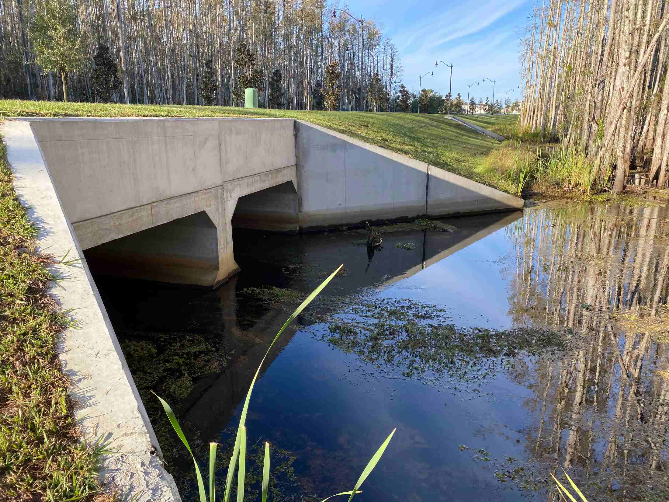 To maintain existing wetland flows, the KPM Franklin designed master stormwater system with three concrete box culverts. Although the project was scheduled to be completed in two years, all work was completed 10 months ahead of schedule.