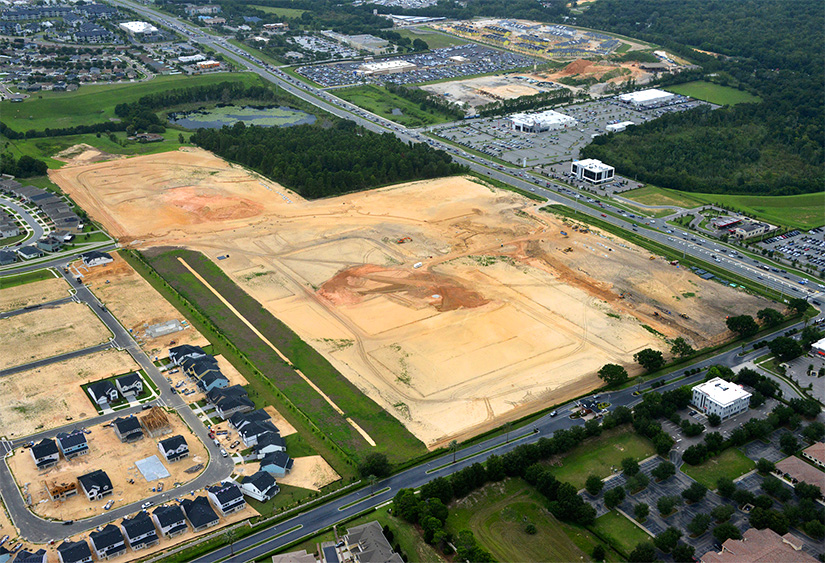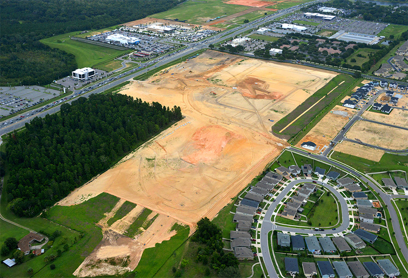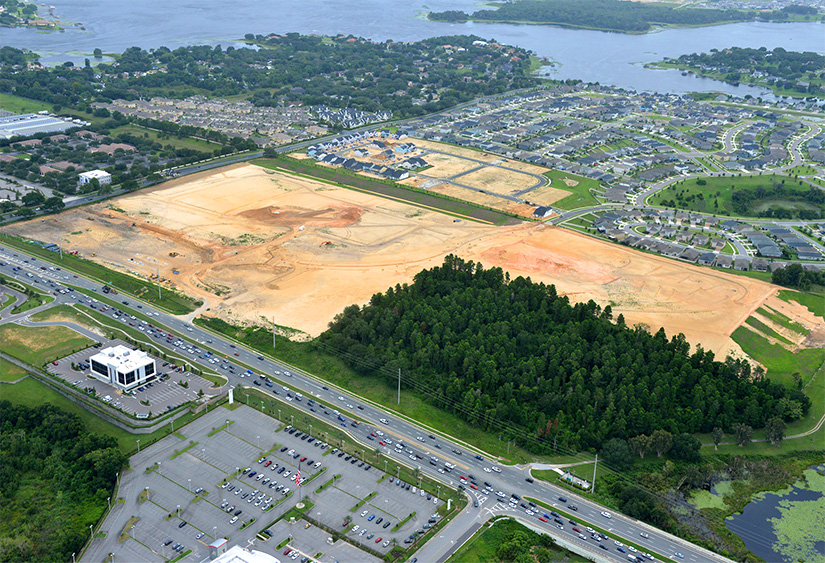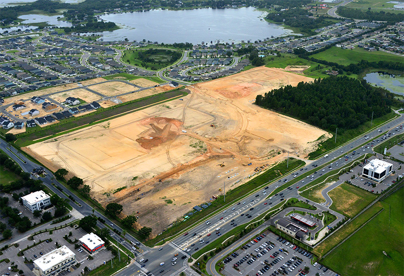 KPM Franklin was contracted by Parkway Clermont Owner to provide land surveying and civil engineering services for the design, permitting and construction of the master infrastructure at Westfall Station on 54.4 acres in Clermont, Florida. The infrastructure includes a master stormwater pipe collection system with two retention ponds and two roadways with a roundabout connecting the multi-use development with Colonial Drive (SR 50) to the north and Magnolia Point Blvd. to the east.